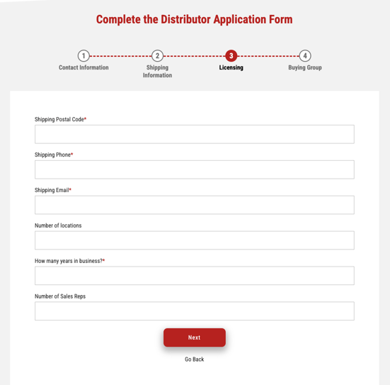 - When there have been conversations with a potential distributor and the Business Development department feels they should fill out the application, they would share the link to the application with their point of contact